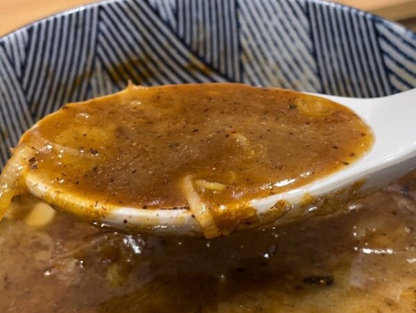 濃厚なつけダレには、刻んだ炙りチャーシュー、白ネギ、メンマが入っており